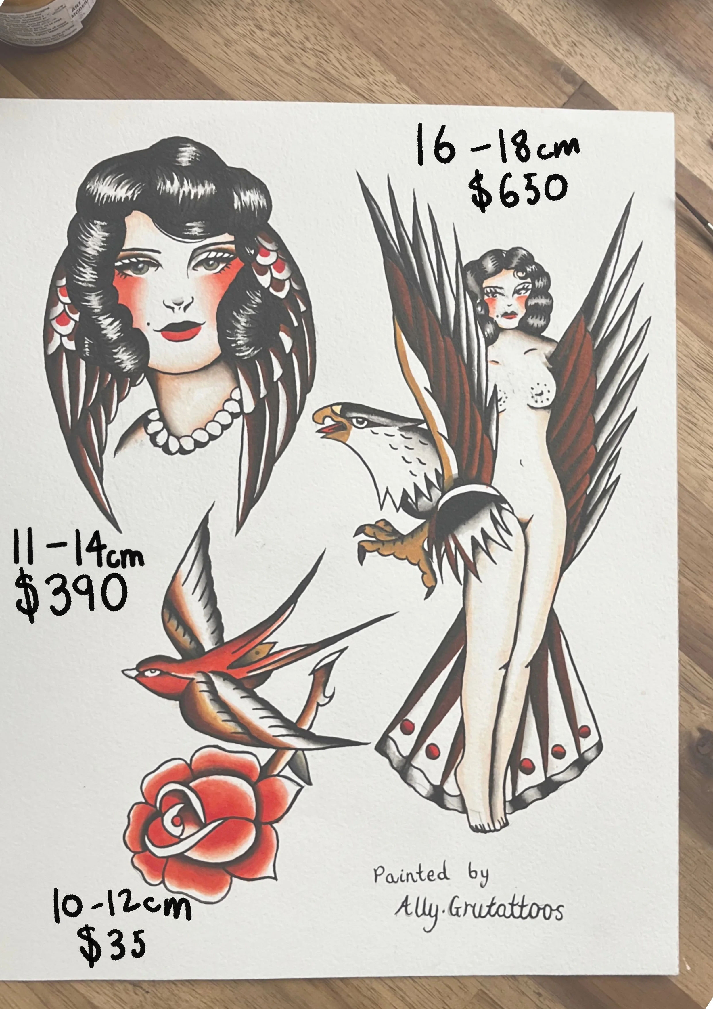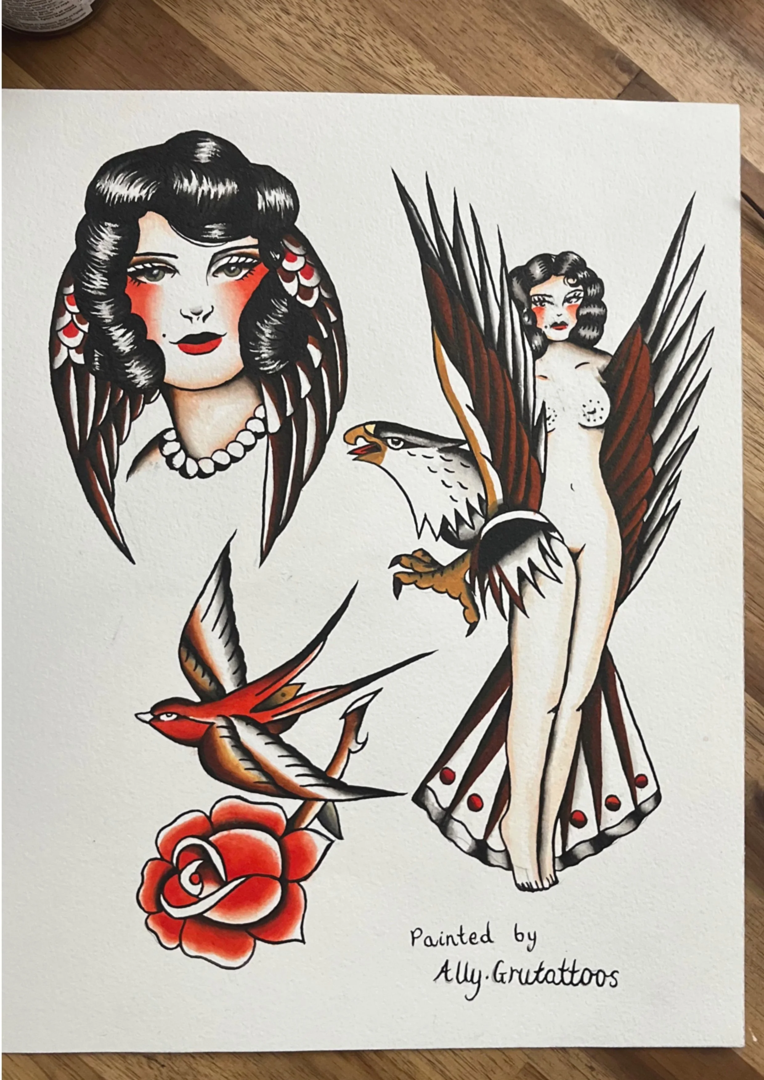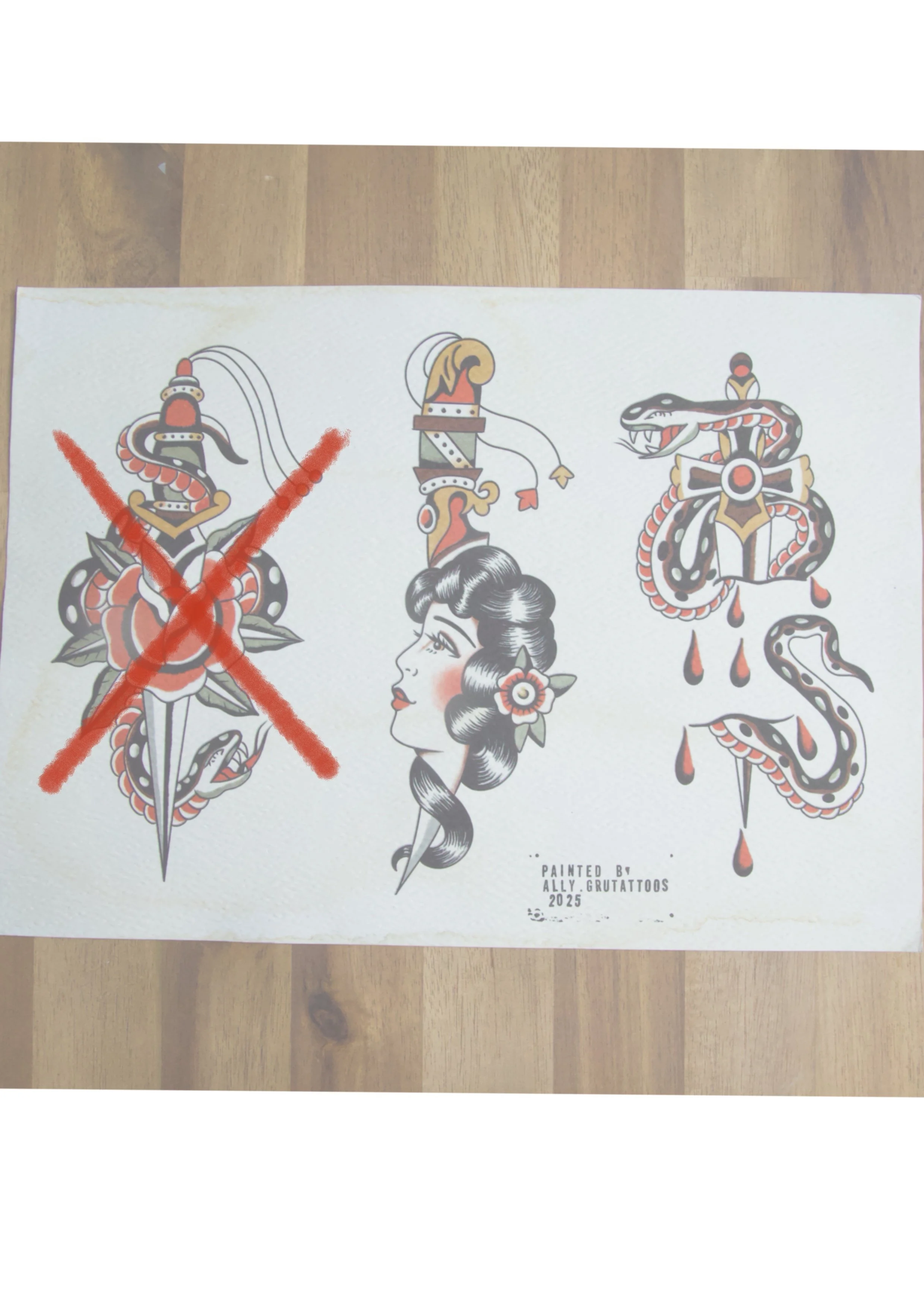 ALL ORIGINAL DESIGNS ARE CREATED TO PAY HOMAGE TO AND FOR THE LOVE OF WESTERN TRADITIONAL TATTOO HISTORY AND IMAGERY. .